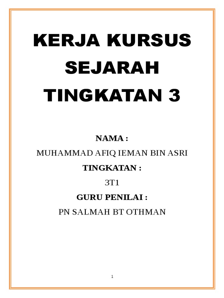 Tugasan sejarah tingkatan 3 | kerja kursus pt3. 0%(1)0% found this document useful (1 vote). Contoh folio sejarah pt3 2020 bagi tingkatan 3. Latihan sejarah tingkatan 3 jawab semua soalan. Text of folio seni tingkatan 3. Contoh tingkatan bahasa inggeris pt3. Klik satu persatu paparan gambar di bawah ini. Folio sejarah tingkatan 2 perjuangan rakyat tempatan mengembalikan kedaulatan bangsafull description. Apa apa yang ada dalam tu kamu boleh ambil tapi pastikan jangan copy pastu paste kat kowang punya folio. Sejarah tingkatan 3 bab 8. Pendidikan moral folio for spm 2013. Macam mana cara nak buat kerja kursus pmr sejarah dan geografi 2013? Project space 7 years ago.