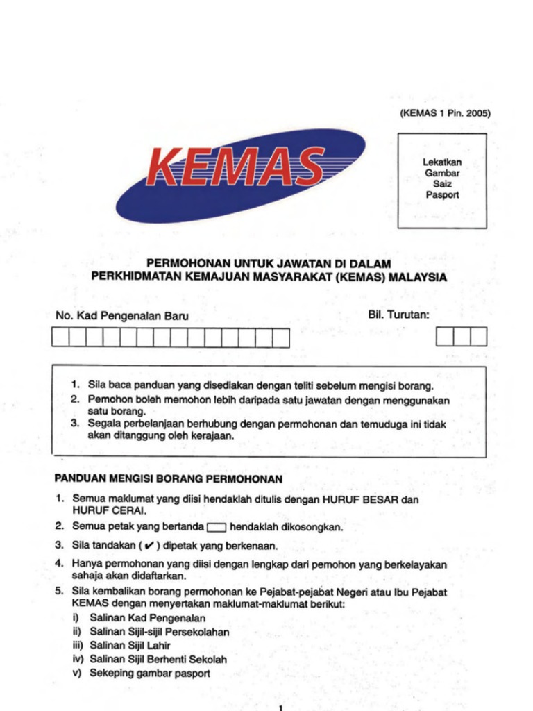 Untuk makluman permohonan jawatan kosong kemas dibuka sepanjang tahun.
