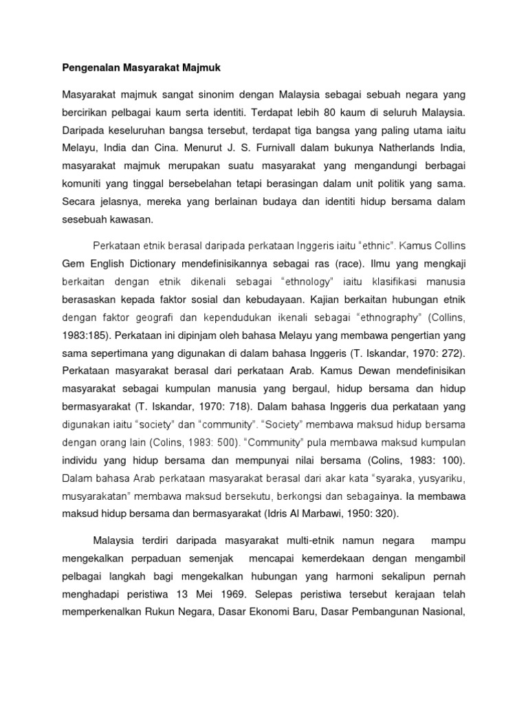 1 sesi 2016/2017 soalan 3 bincangkan sejarah pembentukan masyarakat majmuk di malaysia dan bagaimanakah kerajaan british mengurustadbir kaum cina dan india sebelum perang dunia kedua. Mewujudkan keharmonian di dalam dewan kuliah yang merangkumi berbilang kaum. Mar 01, 2015 · masyarakat majmuk di malaysia terdiri dari pelbagai etnik yang dikategorikan mengikut cara hidup, pola penempatan, pekerjaan dan pendidikan.terdapat lebih 80 kaum di seluruh malaysia. Masyarakat majmuk mempunyai azam sosial yang sama? Pembentukan masyarakat majmuk di malaysia?
