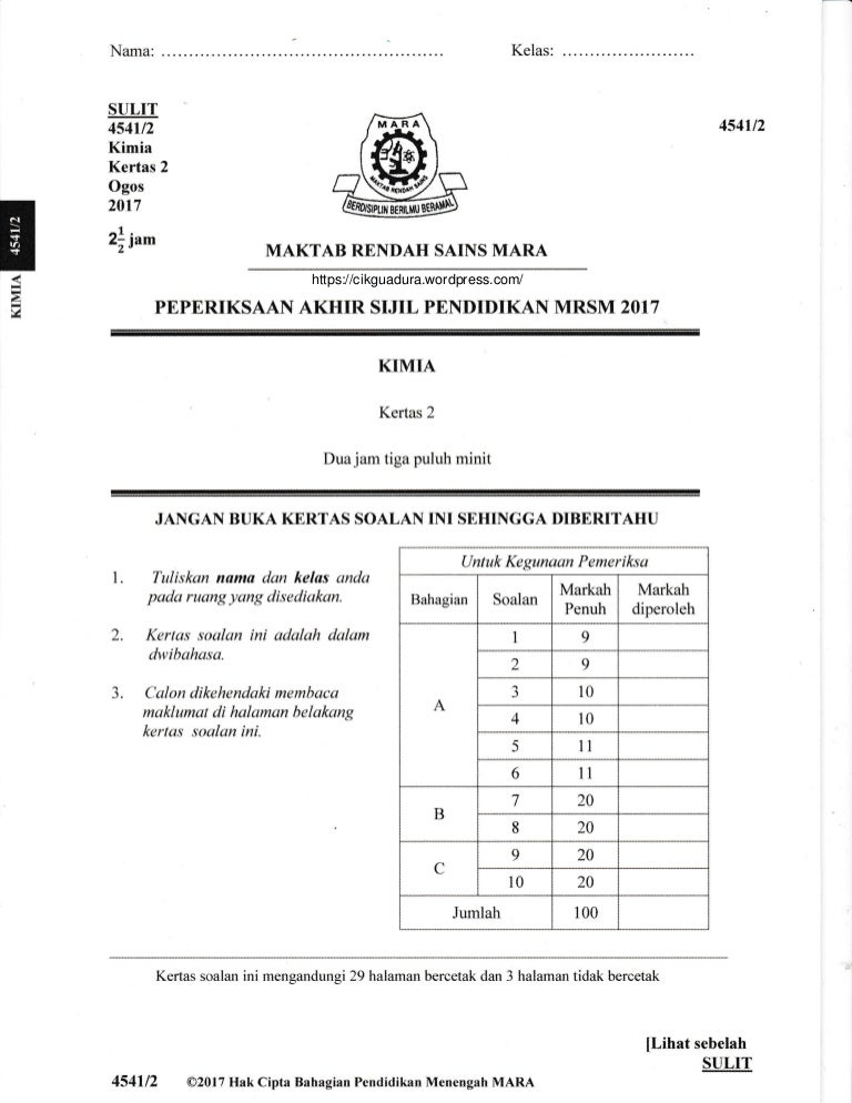 Si la ikut skim pemarkahan yang disediakan supaya perbandingan antara mrsm bo leh di lakukan. Untuk maklumat lanjut berkaitan arahan dan peringatan kepada calon peperiksaan sijil pelajaran semoga perkongsian jadual waktu peperiksaan spm 2021 ini dijadikan panduan buat semua calon spm! Mrsm (maktab rendah sains mara), sabah : One thought on peperiksaan akhir sijil pendidikan mrsm 2017. Oleh sebab itu, saya perlu memfokus pelajar menjawab soalan sampel 8, 9, dan 10 supaya sebelum peperiksaan pada 6/11/2017 masalah berkenaan tidak akan berlaku lagi.