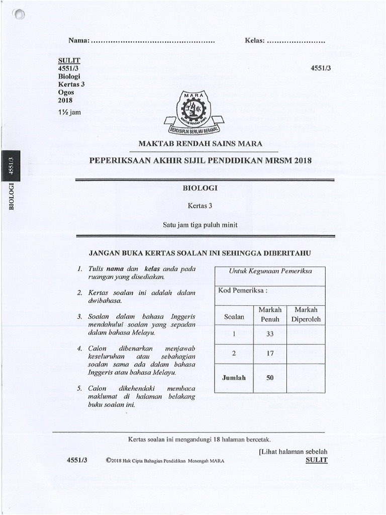 Spm Mrsm Trial Paper Biology 2017 Answers from imgv2-2-f.scribdassets.com Untuk maklumat lanjut berkaitan arahan dan peringatan kepada calon peperiksaan sijil pelajaran semoga perkongsian jadual waktu peperiksaan spm 2021 ini dijadikan panduan buat semua calon spm! Bilakah tarikh exam spm hujung tahun ini? The education of mara is a continuous effort based on knowledge, technology and entrepreneurial values to develop holistic and balanced cadangan mencetak, membekal dan menghantar kertas soalan peperiksaan akhir sijil pendidikan maktab rendah sains mara (mrsm) tahun 2020. Peperiksaan akhir sijil pendidikan mrsm 2017. Spm 2017 dan spm 2016 : Jadual waktu peperiksaan spm 2017. Saya pn ingin mengambil peperiksaan. We are a sharing community.
